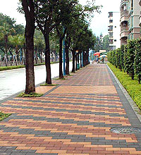 普通的碎石的多孔混凝土材料经过了压制而成形的,这个主要的就是用于一般的街区人行步道以及广场市政、重要工程和住宅小区的人行步道、广场、停车场等场地。